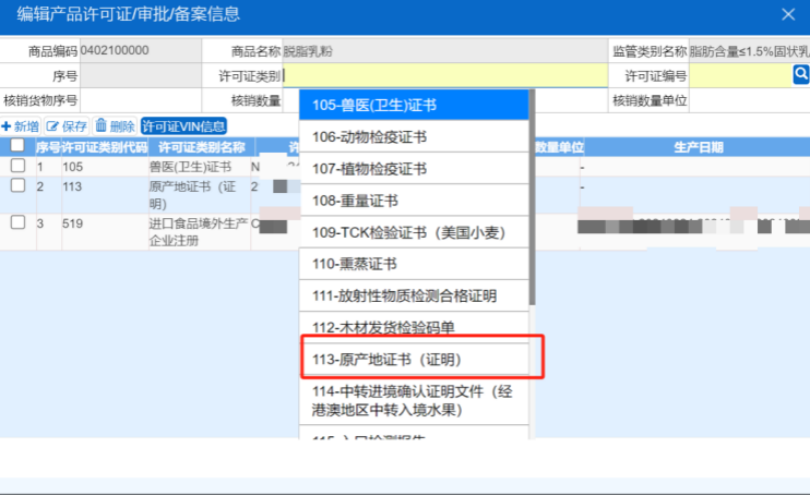 1.2原产地证证书(建议上传在“随附单据”-“原产地证书”栏,在“产品资质”中增加113-《原产地证书》并输入证书编号)