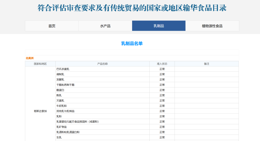 我国对进口乳品实施准入管理。海关总署对境外国家(地区)的食品安全管理体系和食品安全状况开展评估和审查后,确定该国家(地区)获得准入的乳品名单,并以“符合评估审查要求及有传统贸易的国家或地区输华食品目录”在海关总署网站上公布(查询地址:http://43.248.49.223/)。